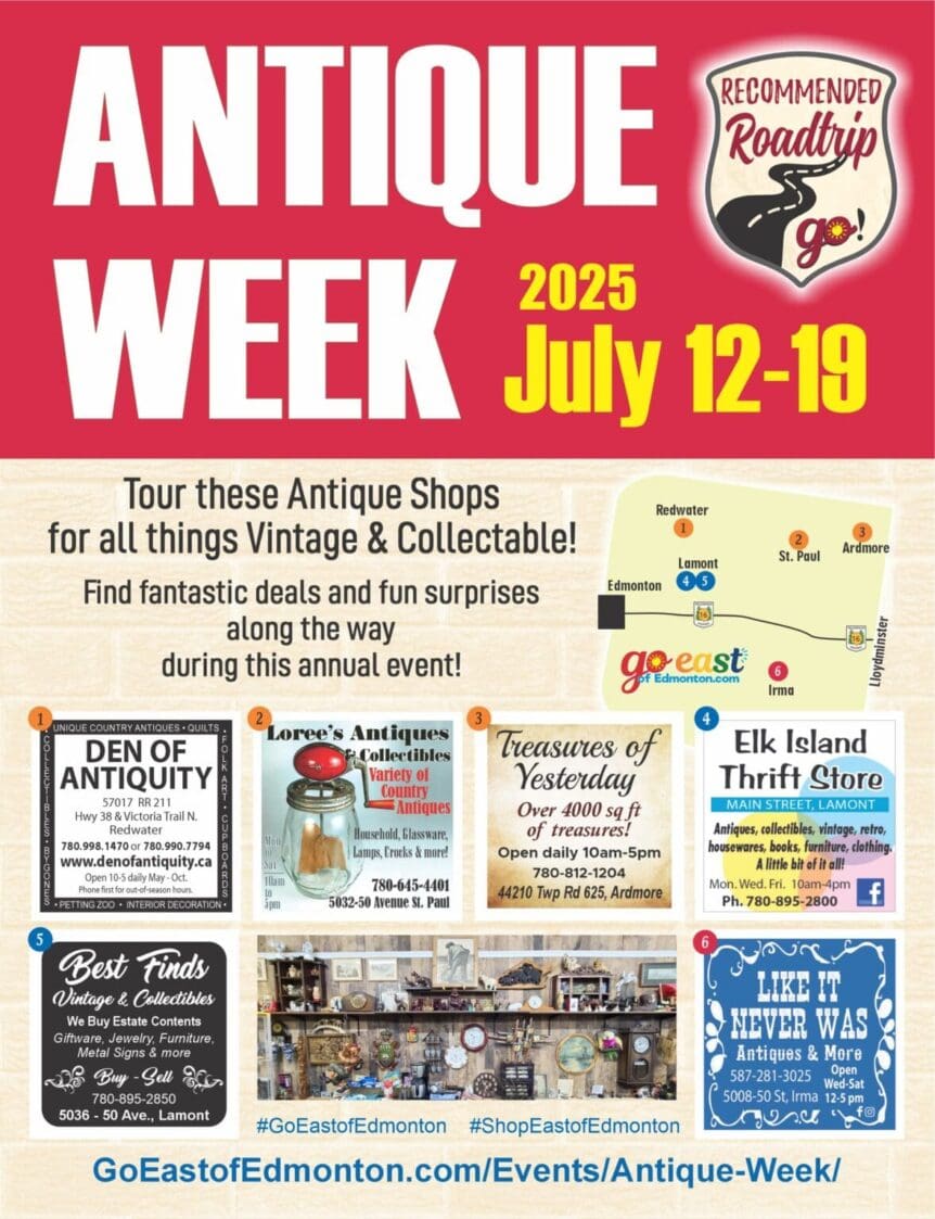 Use this as your complete guide to areas North & Northeast of Edmonton on your 2025 Roadtrips! Don’t forget to post your photos on social media with the hashtags #GoRoadtrips2025 and #GoEastofEdmonton2025 Highway 2 & 55 (Teal Section) Note: Hours to Sticker Stations are subject to change. Town of Gibbons Did you know that Gibbons was the first stop on the Athabasca Landing Trail? Visit the Gibbons Historic Museum, where you will explore well-preserved buildings filled with artifacts from the …