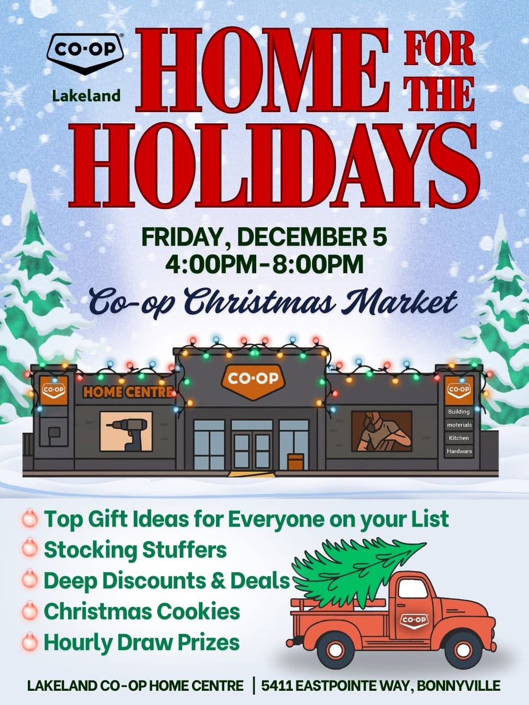 Shop from an amazing selection of Christmas Market items at the Lakeland Co-op! Featuring gifts for everyone on your list, stocking stuffers, discounts and deals, cookies, prizes, and more!