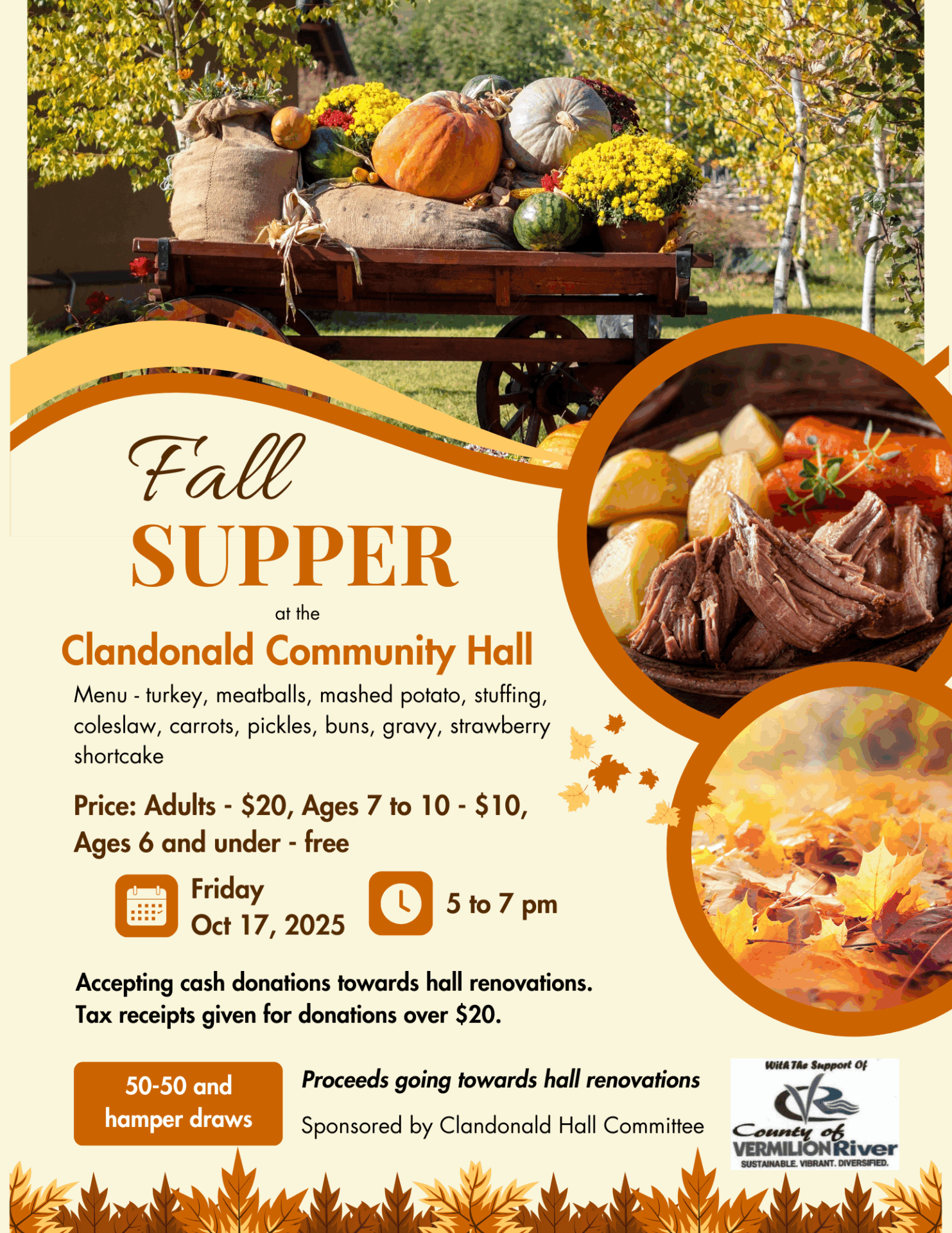 Enjoy a delicious supper at the Clandonald Community Hall! Including roast beef, potatoes, buns, and more!