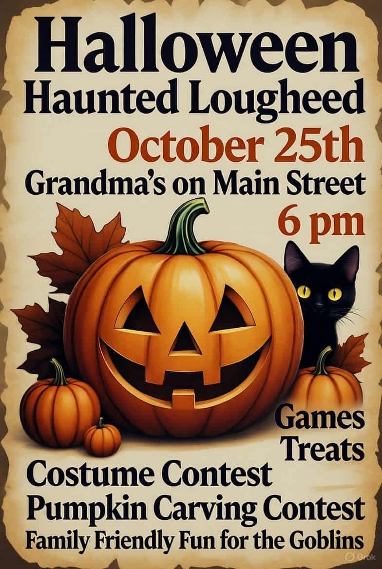 Visit the Halloween Haunted Lougheed on Oct 25th at Grandma’s on Main Street at 6 pm. Featuring games, treats, a costume contest, a pumpkin carving contest, and family-friendly fun for the goblins!
