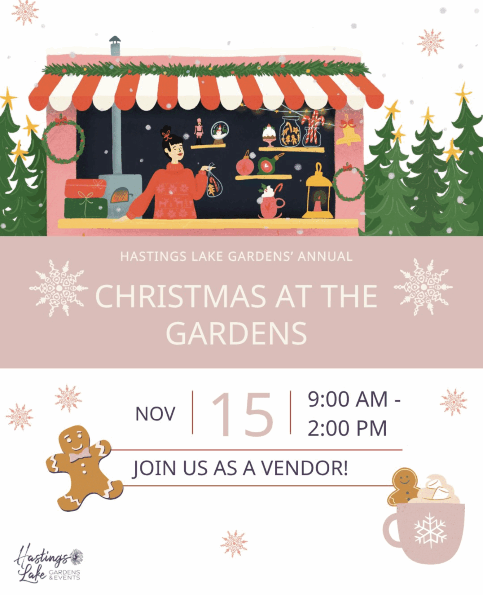 Hastings Lake Christmas at the Gardens Celebrate Christmas in Hastings Lake with tons of exciting vendors! Held on November 15th from 9 am to 2 pm. + Add to Google Calendar + iCal / Outlook export Date Nov 15 2025 Time 9:00 am - 2:00 pm Location Hastings Lake Gardens 51056 Range Road 204, Sherwood Park, AB Website http://www.hastingslakegardens.com/ Category Highway 14ShoppingSoutheast of Edmonton Share this event 2025 Go East of Edmonton Travel Guide