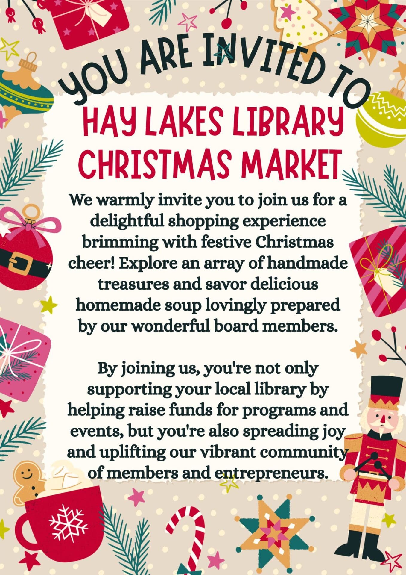 Join us on December 6th at the Hay Lakes Rec Centre and Library for our annual Christmas market. With 28 vendors, you’ll find plenty of magical handcrafted items, baked goods, and other delightful treasures.