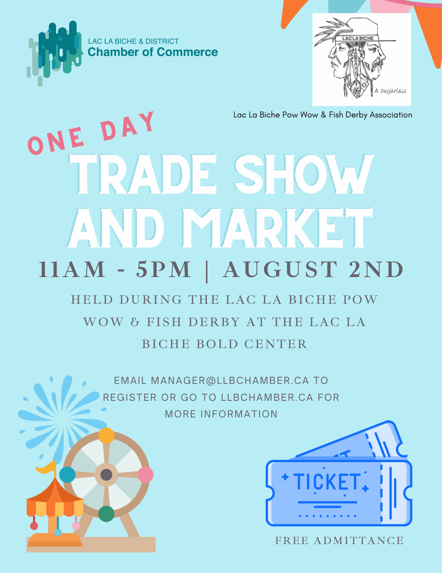 Visit the One Day Lac La Biche Trade Show and Market during the Lac La Biche Pow Wow and Fish Derby at the Bold Centre!