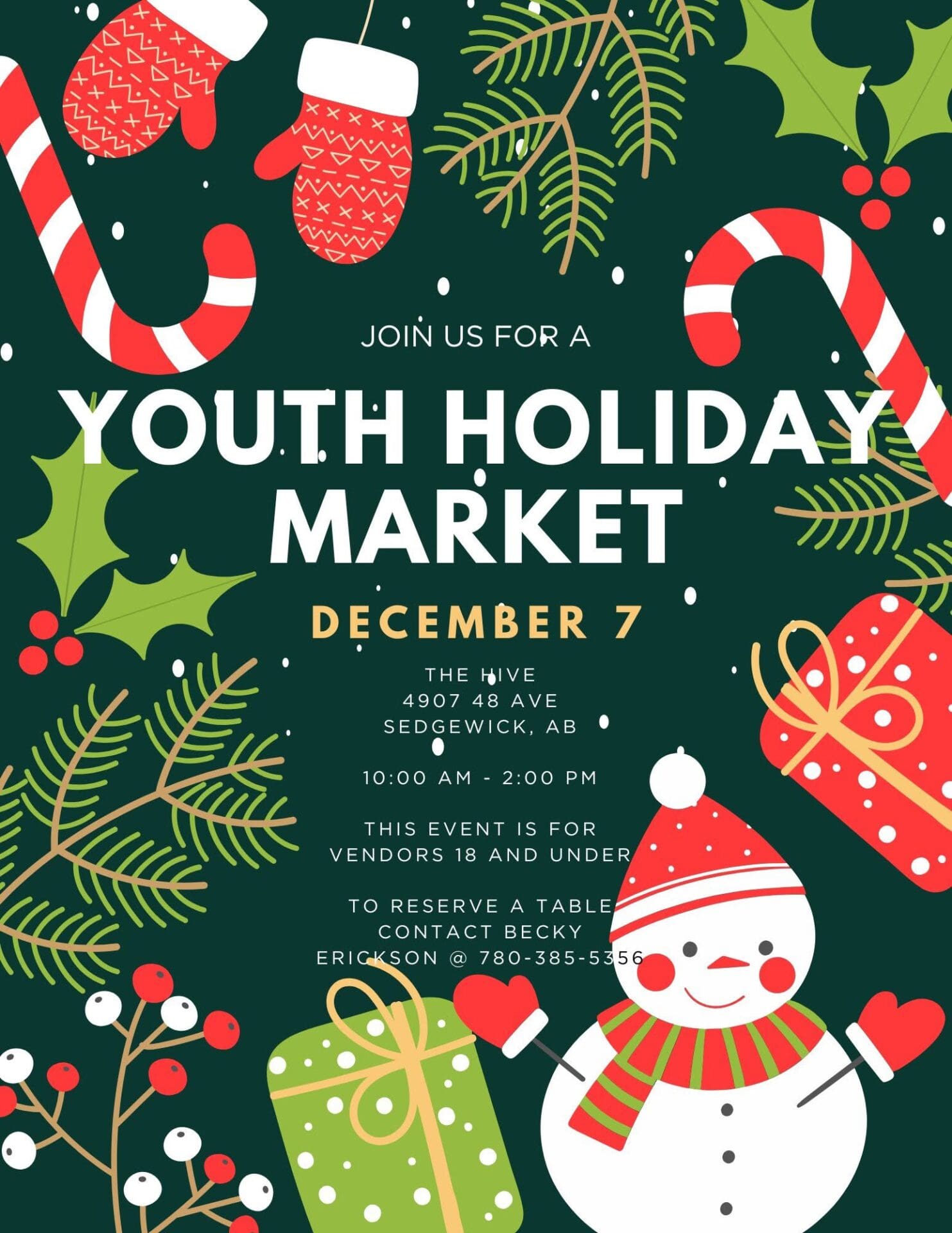 Head down to a Youth Holiday Market at The Hive on December 7th. Held from 10 am to 2 pm. This event is for vendors 18 and under.