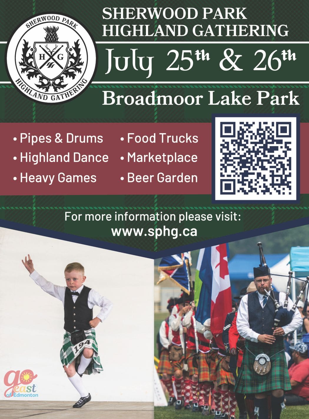 Join us for an incredible weekend at the Sherwood Park Highland Gathering! Held at Broadmoor Lake Park’s Salisbury High School Athletic Fields, the event features piping and drumming competitions, massed band performances, Highland Dance competitions, and thrilling Scottish heavy games. Enjoy children’s activities, food trucks, beer gardens, a community market with local makers and Scottish Clan booths, and more! You won’t want to miss this exciting event!