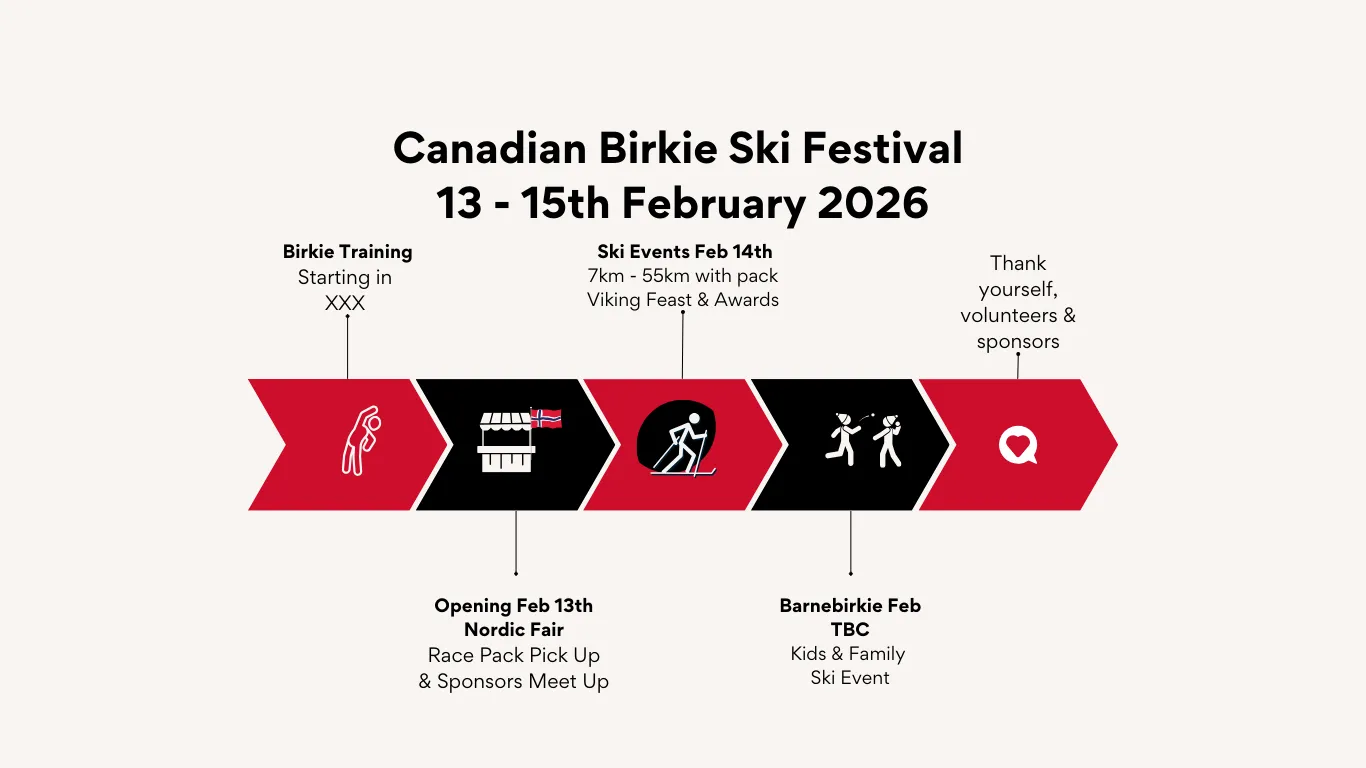– 55 km with pack Torskeklubben Birkebeiner – 55 km Birkie Lite – 31 km Leading Edge Physio Birkie Tour – 13 km Global Edmonton Mini Birkie – 7 km Birkie Fun Ski – 12 km Skate Ski and Barnebirkie Family Ski