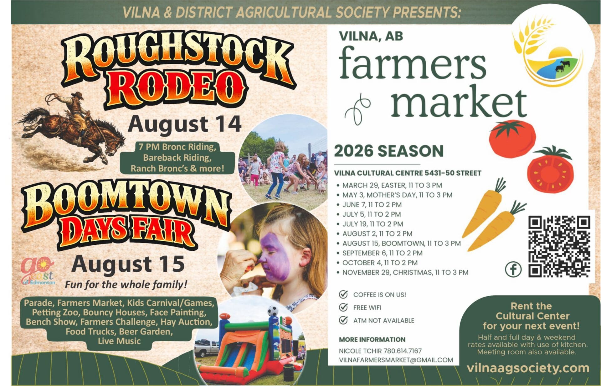 Visit the Vilna Roughstock Rodeo on August 15th! Featuring tons of exciting rodeo events at the Vilna Arena!