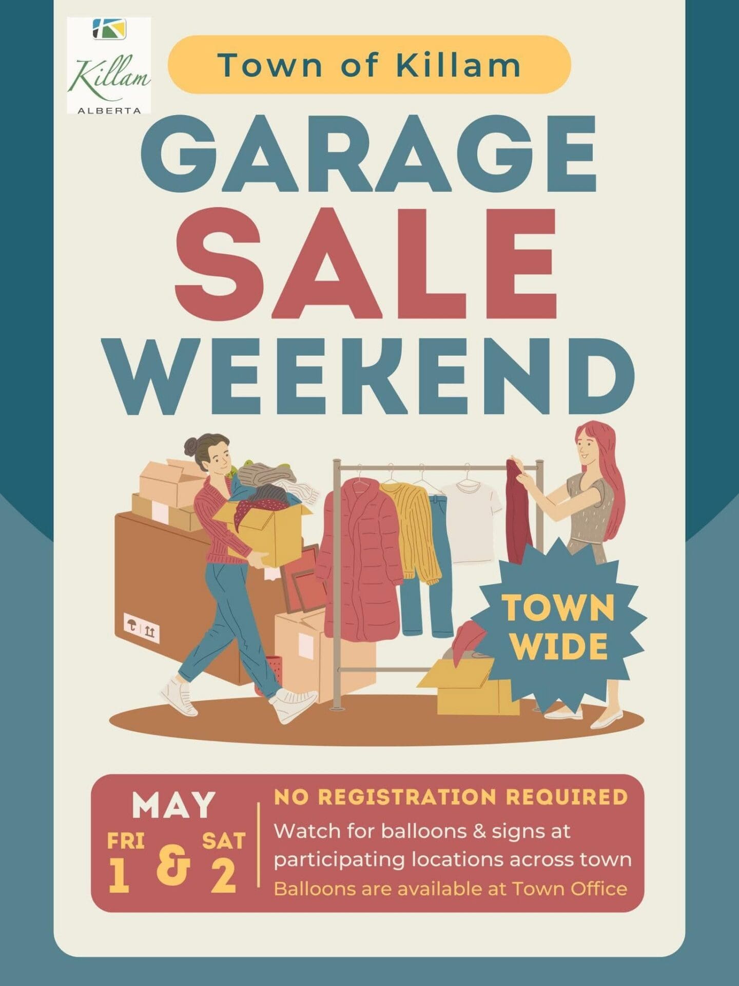 Visit Killam on May 1st and 2nd for the Killam town-wide garage sale! Watch for balloons and signs at participating locations! No registration is required.
