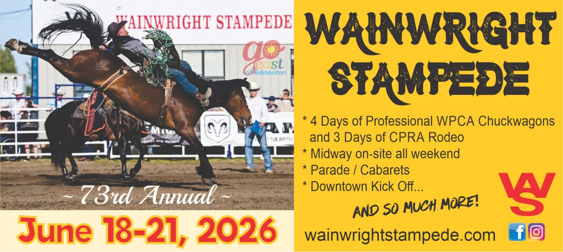 Get ready for the 73rd Annual Wainwright Stampede happening from June 18-21, 2026—a fantastic 4-day event packed with excitement!