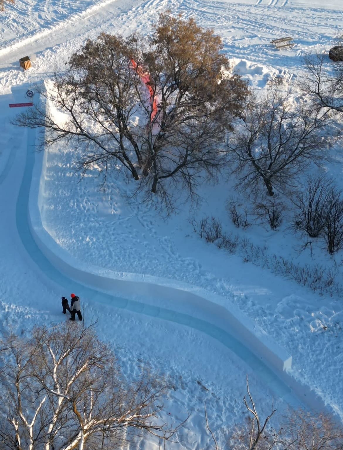 Take the family out for some free winter fun on this 115 ft ice slide in Fort Saskatchewan at Legacy Park built by Activate Arts Alberta.